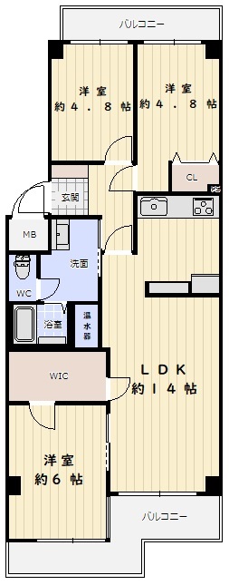 お部屋は8階フロアの南西向きで、日当たり・通風・眺望良好な3LDKです!LDKが約14帖で開放感がございます♪全居室洋室フローリング仕様で、お掃除ラクラクですね!ウォークインクローゼットもあり、収納便利です♪両面バルコニー仕様で、風通し良くお住いいただけます!