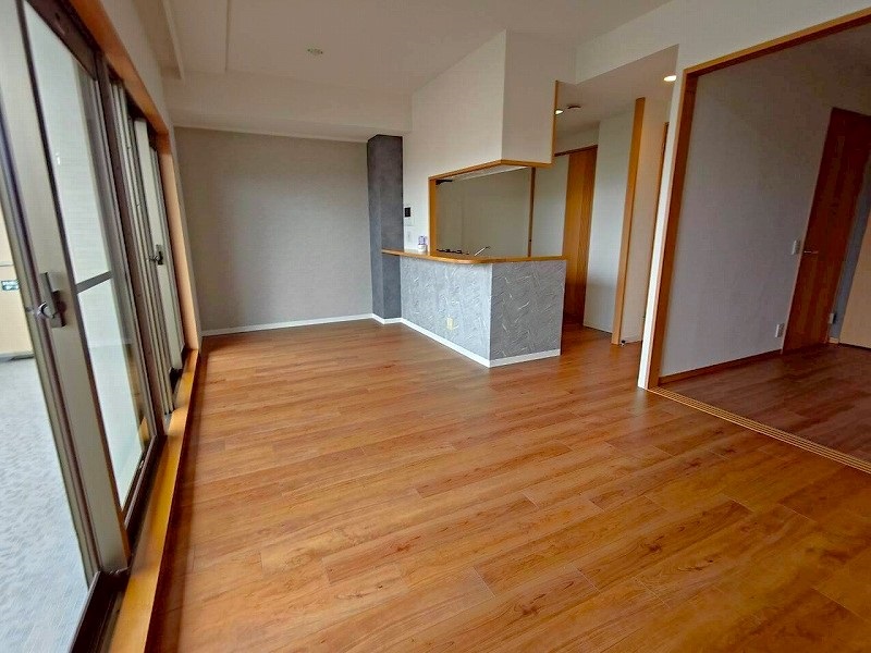 お部屋は7階フロアの西向きで、日当たり・通風・眺望良好な3LDKです!LDKが約14.5帖で、広々した開放感がございます♪オープン対面式キッチンでリビングを見渡せ、会話を楽しみながらお料理ができますね!全居室洋室仕様で、お掃除ラクラクです♪トランクルームもあり、収納スペースが充実しております♪ワイドバルコニーで開放感がございます!