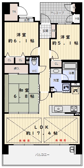 お部屋は9階フロアの東向きで、日当たり・通風・眺望良好な3LDKです!アウトポール設計を採用で柱型がない、スッキリとした空間を実現した約17.4帖のLDKです♪リビング・ダイニングに床暖房が設置されており、寒い日は暖かくお過ごしいただけます!オープン対面式キッチンでリビングを見渡せ、会話を楽しみながらお料理ができますね!家事動線が考慮された2WAYキッチン・洗面室で行き来でき、生活便利な生活が送れますね!全居室に収納あり・トランクルームもあり、お部屋をスッキリ片づけて広々ご利用いただけます♪洋室 約6.1帖に出窓があり、時計や写真・小物などを飾ってステキなお部屋になりそうですね!2WAY動線を確保した使い勝手のよい和室は、板の間も設け約6.8帖の広さを確保されております♪最大出幅2mのワイドなバルコニ-なので、ガーデニングも楽しめます♪仕様・設備も良好で、食器洗乾燥機付システムキッチン・浴室換気乾燥暖房機付ユニットバスなどがございます!