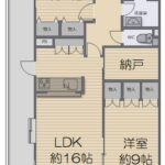 | 設備・条件 | 角部屋 システムキッチン バス専用 トイレ専用 バス・トイレ別 オートロック 防犯カメラ エレベータ 駐輪場 バイク置き場 バルコニー ルーフバルコニー,LDK約16帖,納戸,全居室収納有 |